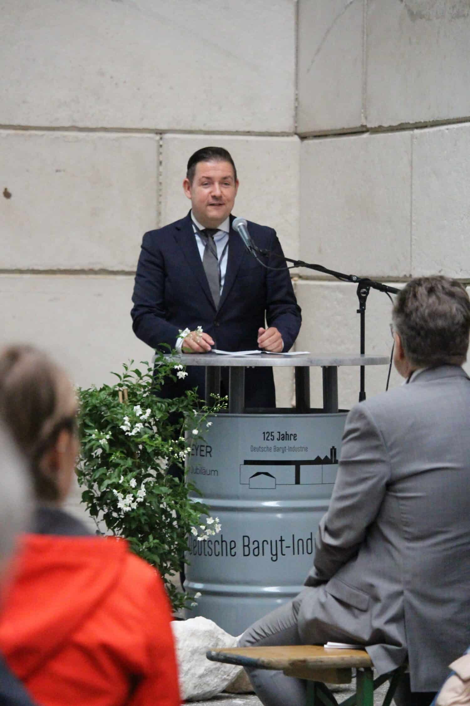 Die Eröffnung der Veranstaltung übernahm Moritz Ostenrieder, geschäftsführender Gesellschafter des Mutterunternehmens Sachtleben Minerals. In seiner Rede hob er die Entwicklung des Unternehmens und dessen enge Verbundenheit mit der Region hervor.